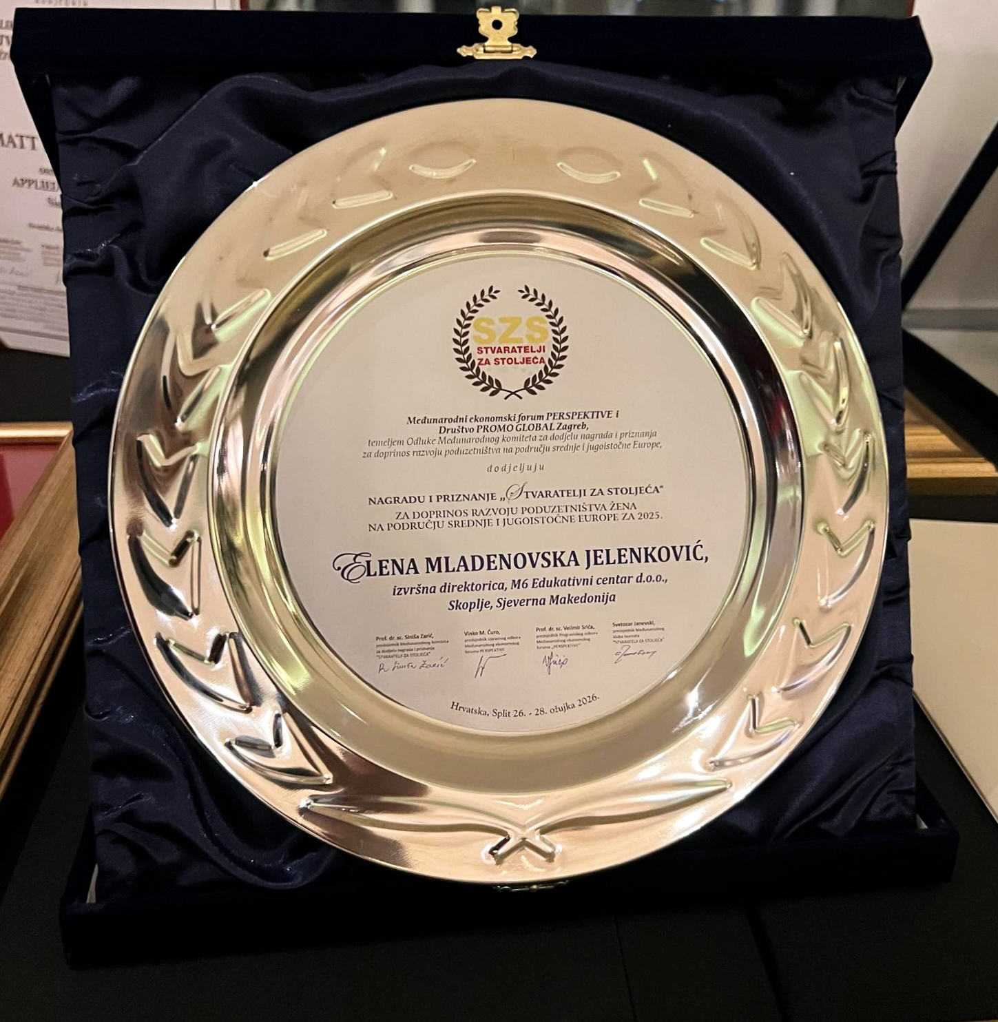 На овој престижен настан, Елена Младеновска Јеленковиќ, извршна директорка на М6 Едукативен центар, беше наградена со меѓународното признание „Stvaratelji za stoljeća“, за нејзиниот исклучителен придонес во развојот на женското претприемништво во Централна и Југоисточна Европа за 2025 година.