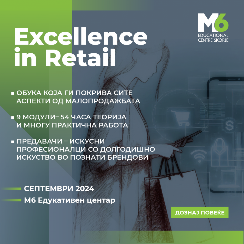 Малопродажбата се смета за еден од секторите што статистички вработува најголем дел од жителите на нашата земја. Истражувањата покажуваат дека компаниите во оваа индустрија обезбедуваат елементарно обучување за своите вработени, но кога станува збор за раководители во областа, повеќето малопродажни бизниси се принудени да бараат дополнителен професионален развој. Обуката Excellence in Retail на М6 Едукативен…