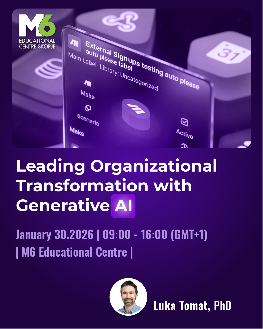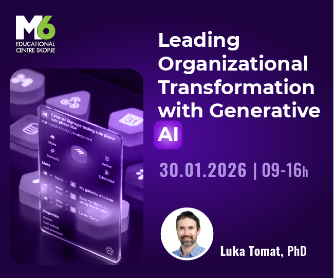 With great pleasure, we would like to invite you to be a part of a historic occasion, First Ever AI Tech Summit in Macedonia. M6 Educational Centre is a proud supporter of this event as we strongly believe that AI is reshaping all industries and we are ready to provide the necessary education and trainings…