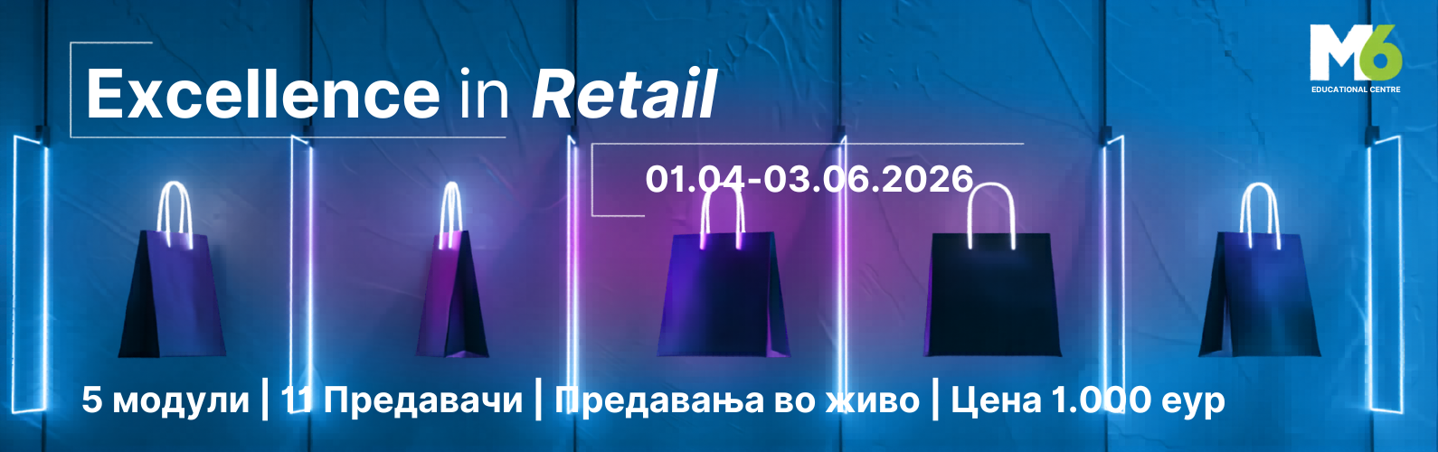 Малопродажбата се смета за еден од секторите што статистички вработува најголем дел од жителите на нашата земја. Истражувањата покажуваат дека компаниите во оваа индустрија обезбедуваат елементарно обучување за своите вработени, но кога станува збор за раководители во областа, повеќето малопродажни бизниси се принудени да бараат дополнителен професионален развој. Обуката Excellence in Retail на М6 Едукативен центар нуди внимателно дизајнирана програма за развој на вештини со цел да им помогне на нашите најголеми трговци да ги постигнат своите стратешки цели, да растат и да ја изградат силата на менаџментот. Искусните експерти кои се тренери во рамките на обуката ќе споделат најсовремено, практично знаење.