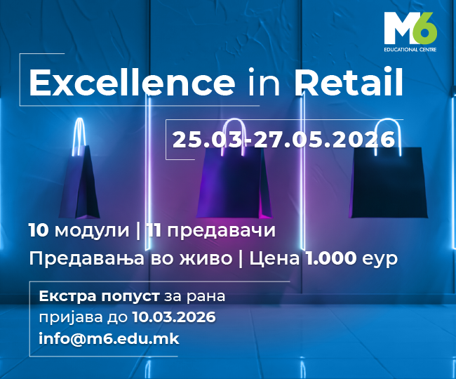 Малопродажбата се смета за еден од секторите што статистички вработува најголем дел од жителите на нашата земја. Истражувањата покажуваат дека компаниите во оваа индустрија обезбедуваат елементарно обучување за своите вработени, но кога станува збор за раководители во областа, повеќето малопродажни бизниси се принудени да бараат дополнителен професионален развој. Обуката Excellence in Retail на М6 Едукативен…